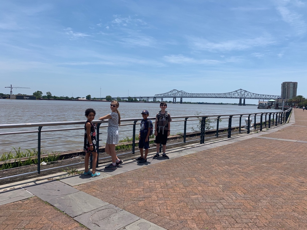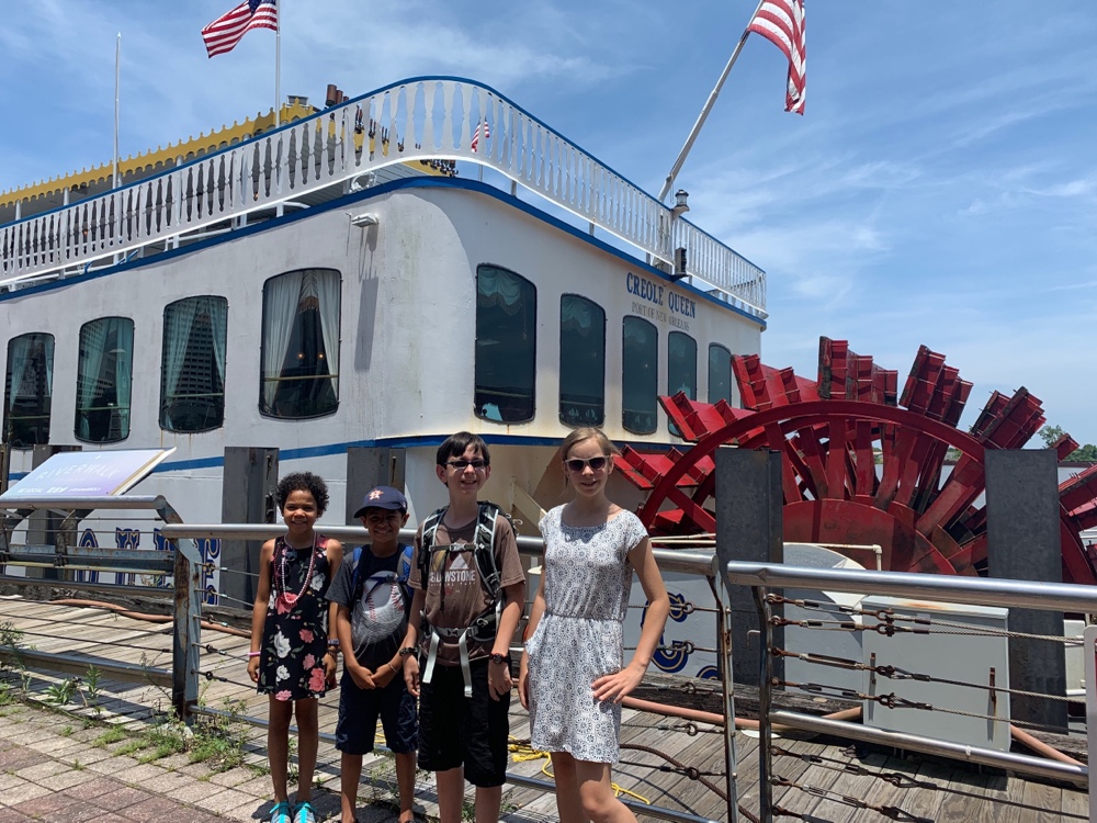 Momma was able to convince the (not as friendly as usual) Park Ranger to unlock the closed visitor center and get the kids Jr. Ranger books and badges. We could not pass the opportunity to earn another badge. We were the last ones back on the boat but it was worth it. We found seats in the sun but then the boat turned around and we were in the shade! On the way back our historian told us about Hurricane Katrina and how the state of Louisiana really let down New Orleans in their time of need. Like all good cities, rich in culture and history, they have risen again stronger then ever.