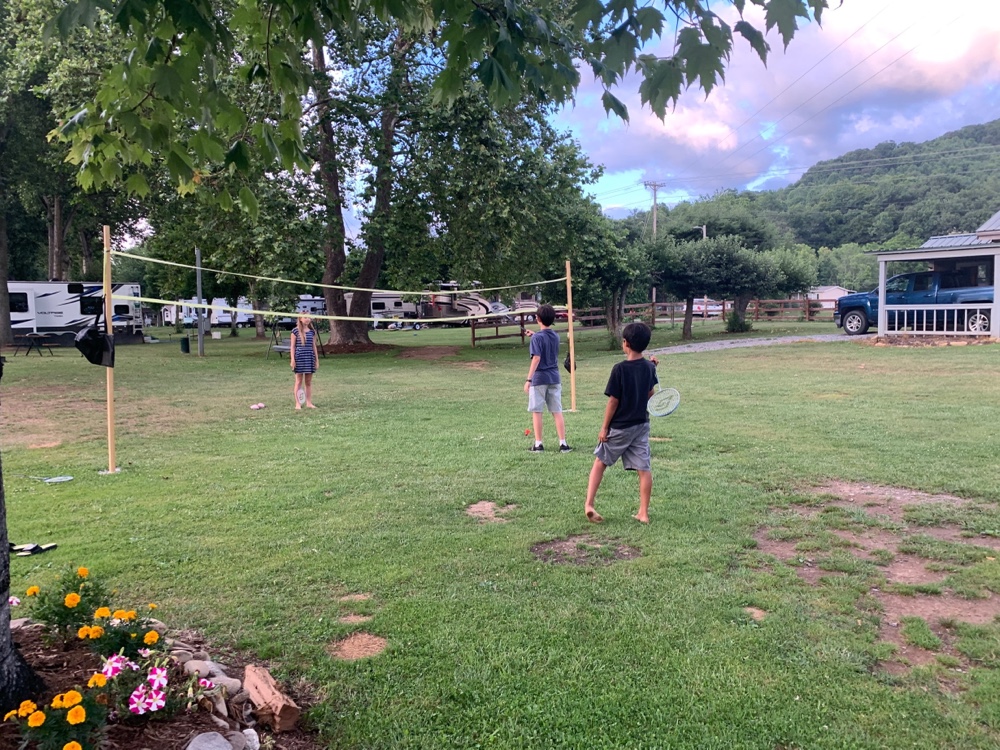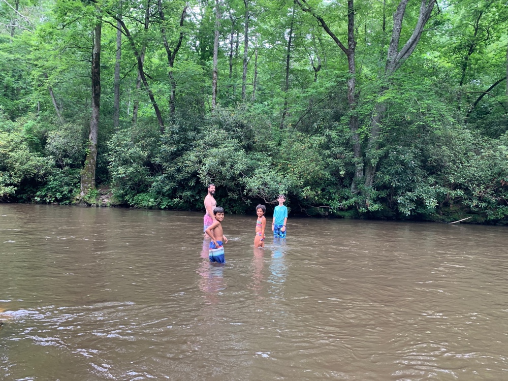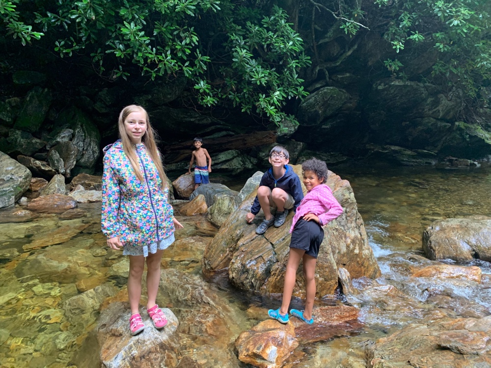 On the way from Nashville to Raleigh we drove through part of the Blue Ridge Parkway. On our last trip we did the Great Smoky Mountains and were excited to be in the area again. We stayed at Winngray Campground, which we would recommend for the friendly staff and the cool river. We played badminton with a net (at home we don’t have one) and the kids played with a few of the kids staying there. The next morning we were surrounded by fog (smoky mountain style) and by breakfast it had risen. We spent some more time at the river before starting the parkway.