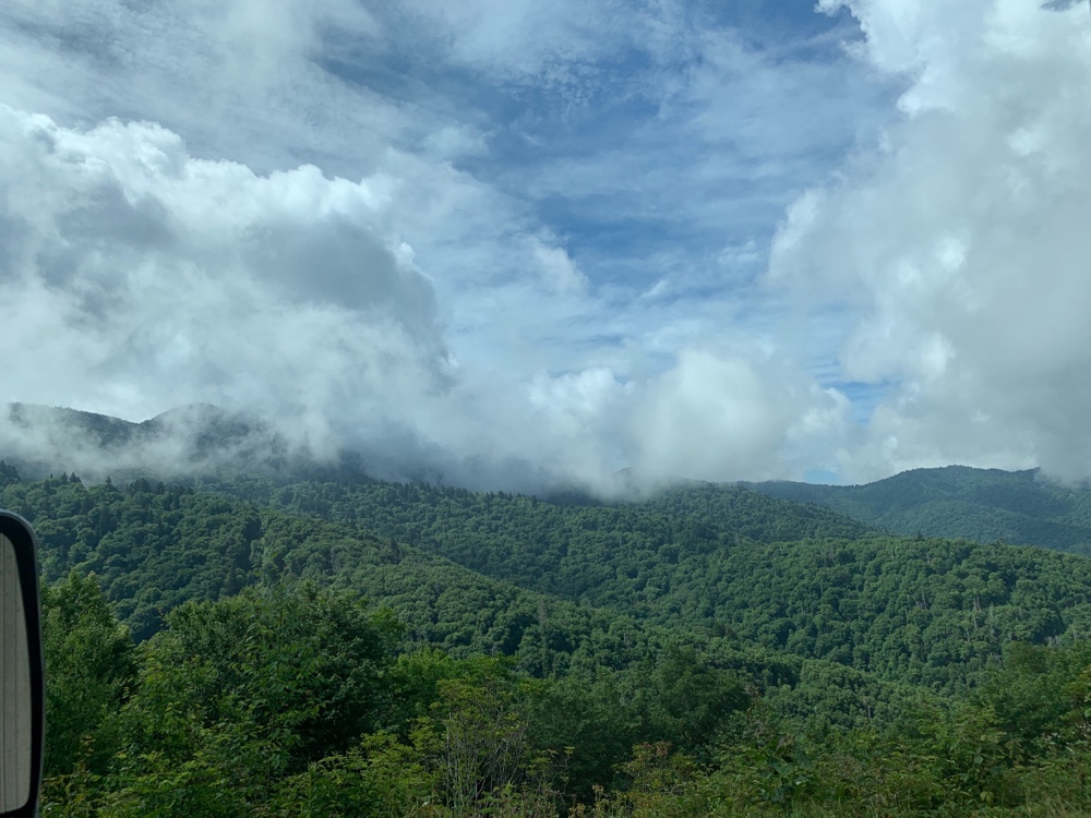 We drove to the Water Knob Visitor Center making some stops at viewpoints along the way. The views were incredible at every stop. We drove through stoping to enjoy most of the turnouts. We made it to the highest point at 6053ft elevation with great weather and sunshine. As we headed down on the other side we went through some very very foggy areas. It was so thick we could barely see in some parts. Stephen was very cautious as we made our way toward Looking Glass Rock. We were glad we stopped so much on the other side since many overlooks were to foggy to see anything on this side.