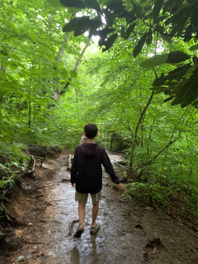 We had a good rain that night but unfortunately no thunder and lightening. we drove some more of the parkway and stoped at the Blue Ridge Parkway visitor center. We were not as impressed as half the signs and information was covered in accessible at this time. Our kids are learners and love gathering information when it is taken from them some get a bit frustrated. We left to do the WCT trail. It was pretty and we noticed the differences in plants and animals from other areas we have visited.