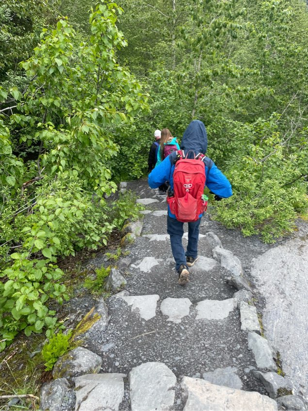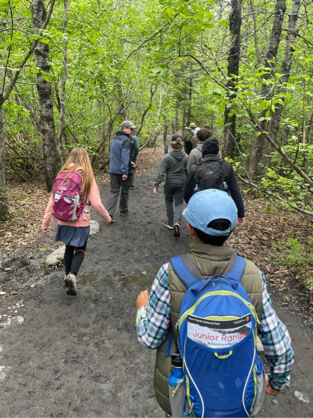 We arrived just in time to grab some Junior Ranger books and head out on a Ranger Lead Hike. Our Ranger was very knowledgeable in the area and the glacier. She led us through some fun challenges and taught us about Glacier flour and the history of Kenai Fjords.