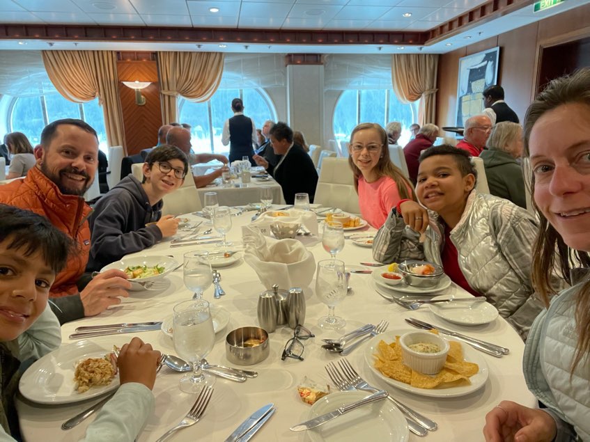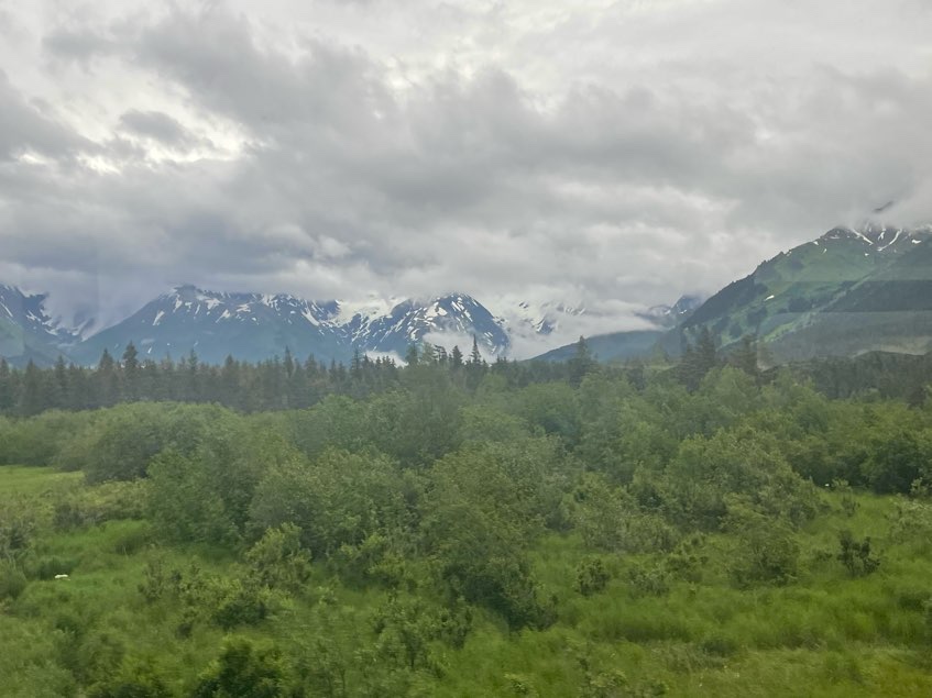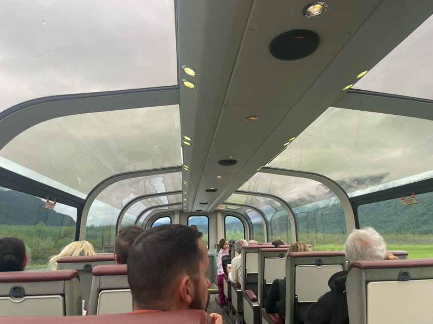 The train was an amazing way to see Alaska. Even though it was early, 6:45 departure time, we were all excited for this new experience. After getting to our seats and beginning the journey we went downstairs for breakfast with a view. During breakfast we saw Dall Sheep on the hills, gorgeous bay views, and the light clouds in the sky only I handed the scenery.
