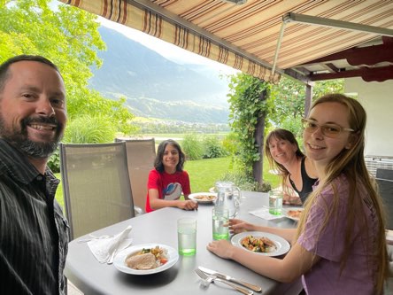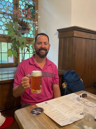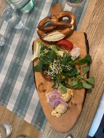 Soon return to the town we had a traditional Bavarian meal at Schloss Bräustüberl Hohenschwangau. It was definitely geared toward tourists with the staff in traditional dress and the music and ambiance making it feel almost theme park like. This made it even more fun for us, not a place you want to be everyday but fun for a meal. In fact after our tour we returned to enjoy dessert.