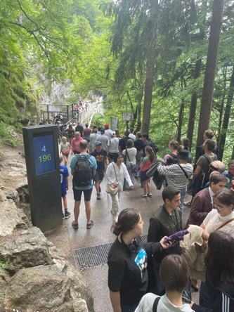 We took a hike to the Marienbrücke suspension bridge for a fabulous view of the Neuschwanstein Castle. We were glad we arrived somewhat early (11:30am) as it was crowded but no line. As we took pictures it only got more crowded and the line was growing longer.